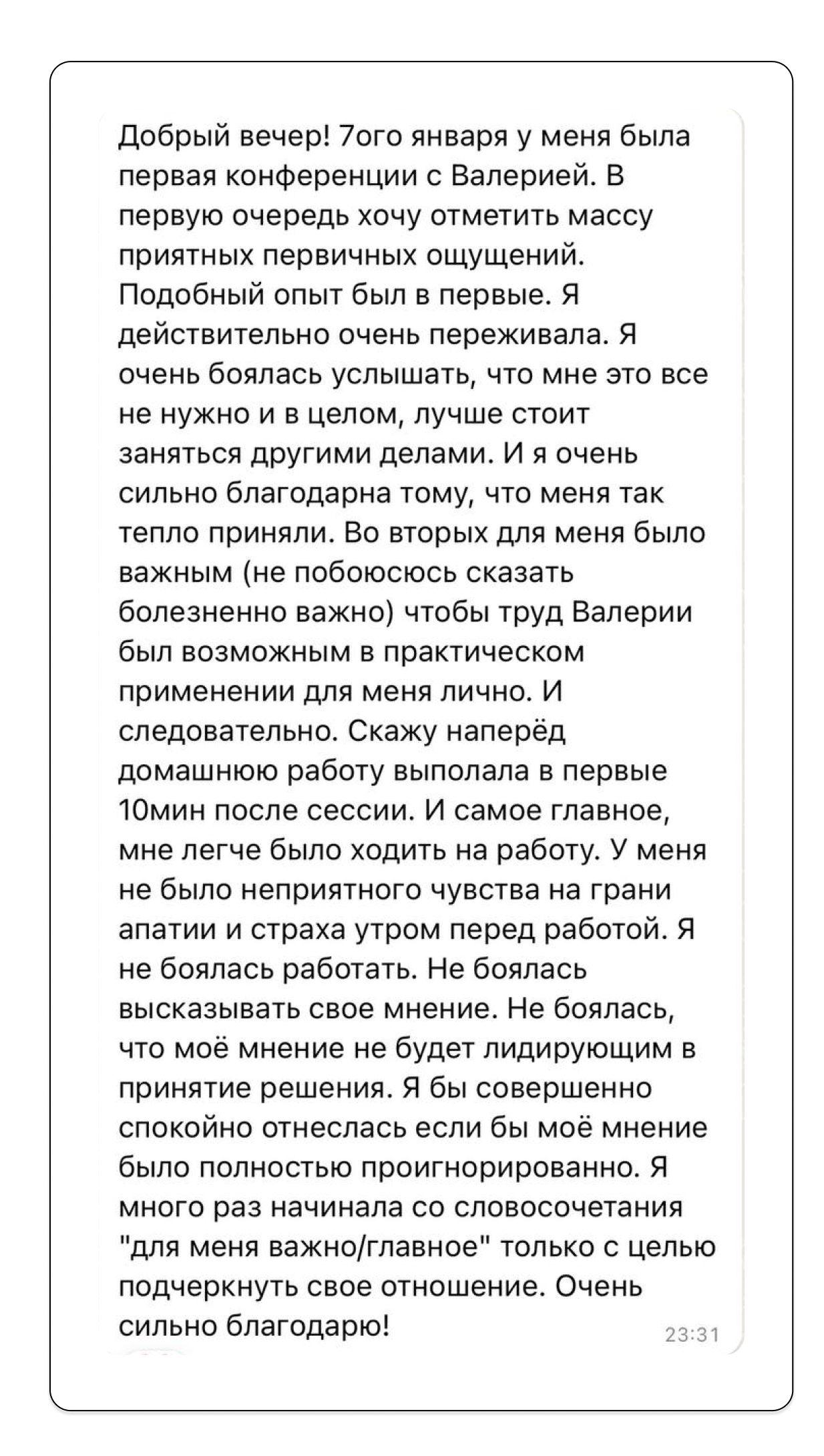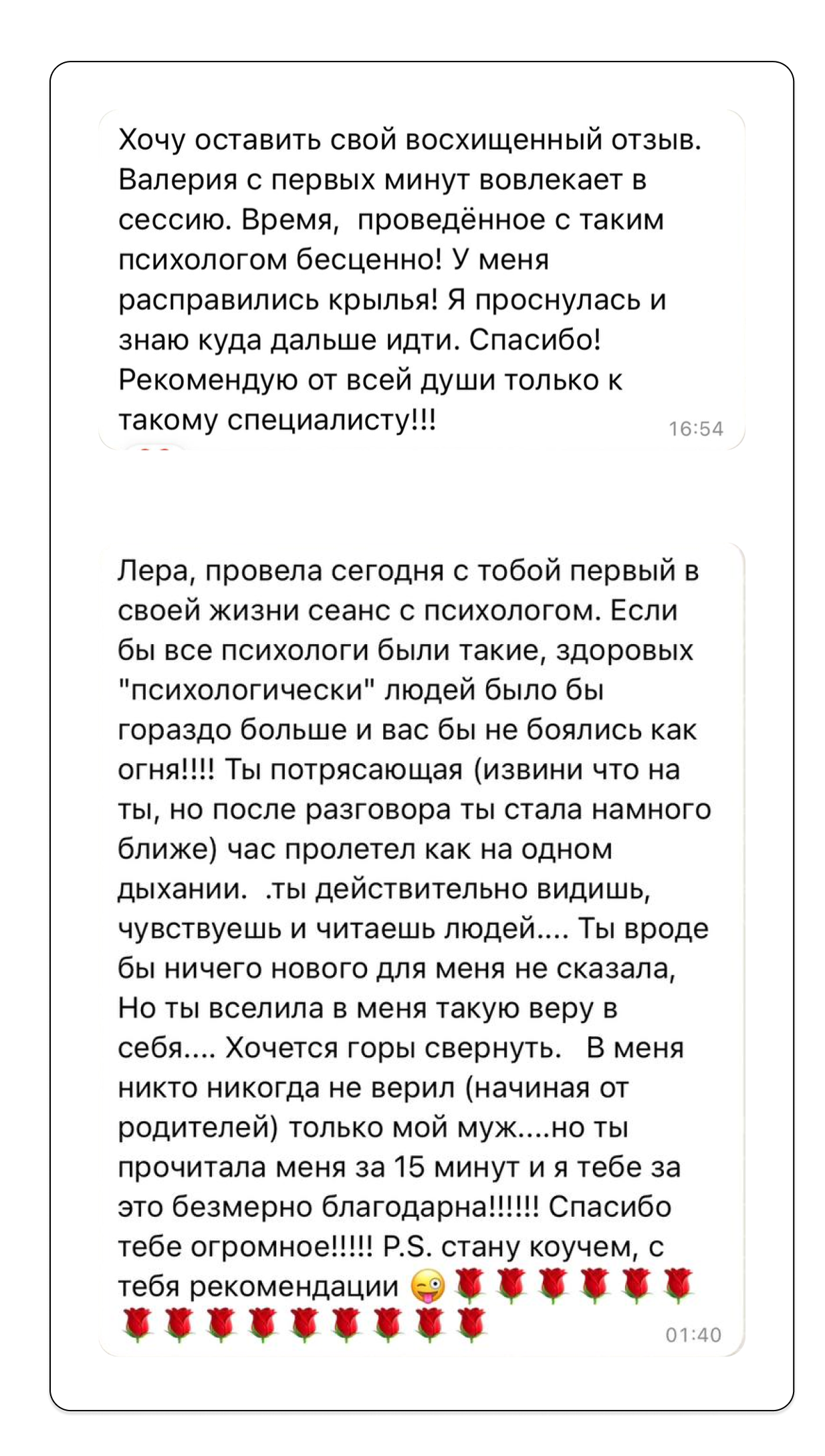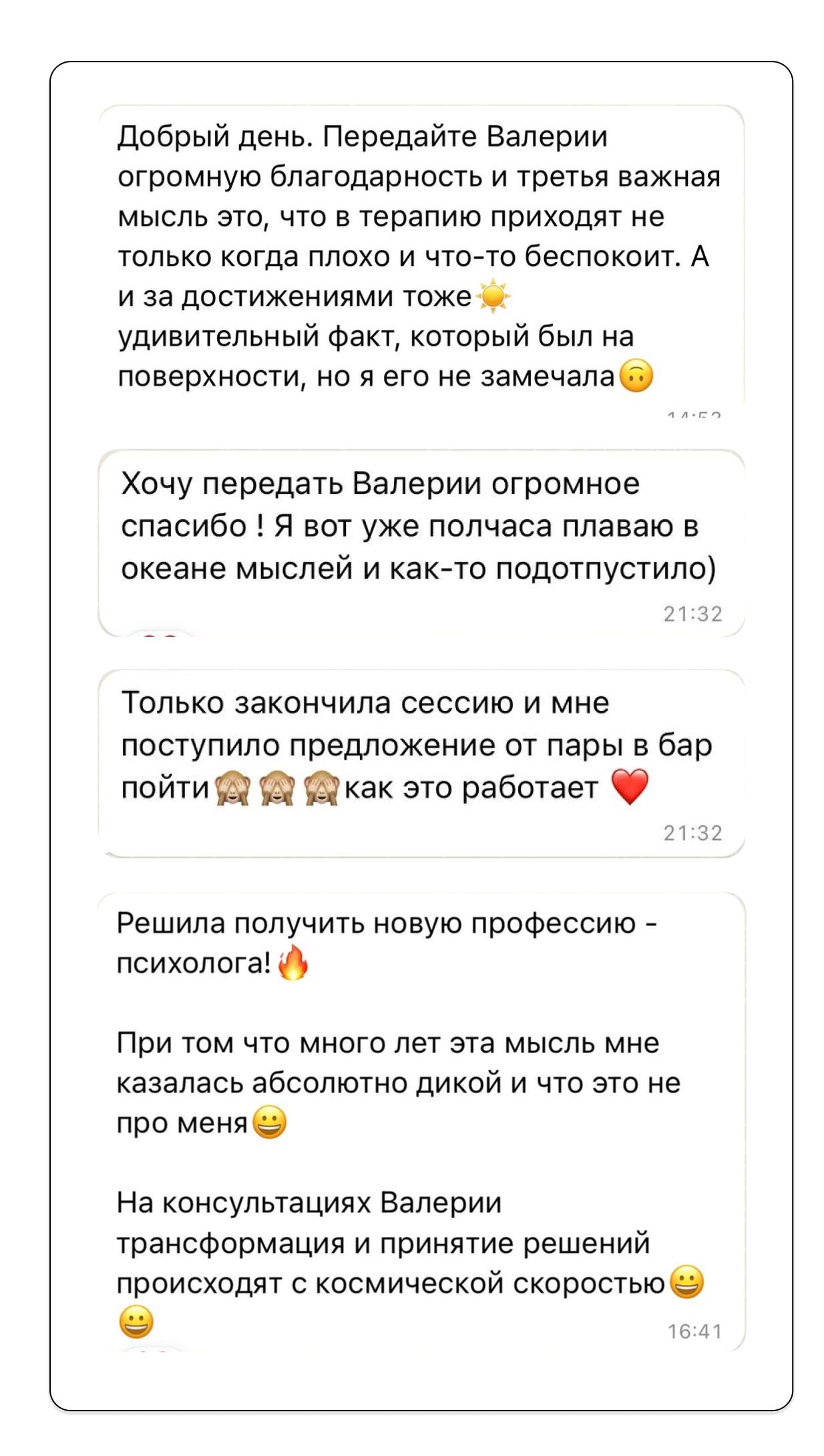 Каждый запрос индивидуален. Все зависит от ваших целей, сложности запроса, готовности к переживанию эмоций, которые появятся в процессе работы, и многих других факторов. В среднем, формирование видимых изменений происходит уже через несколько встреч.